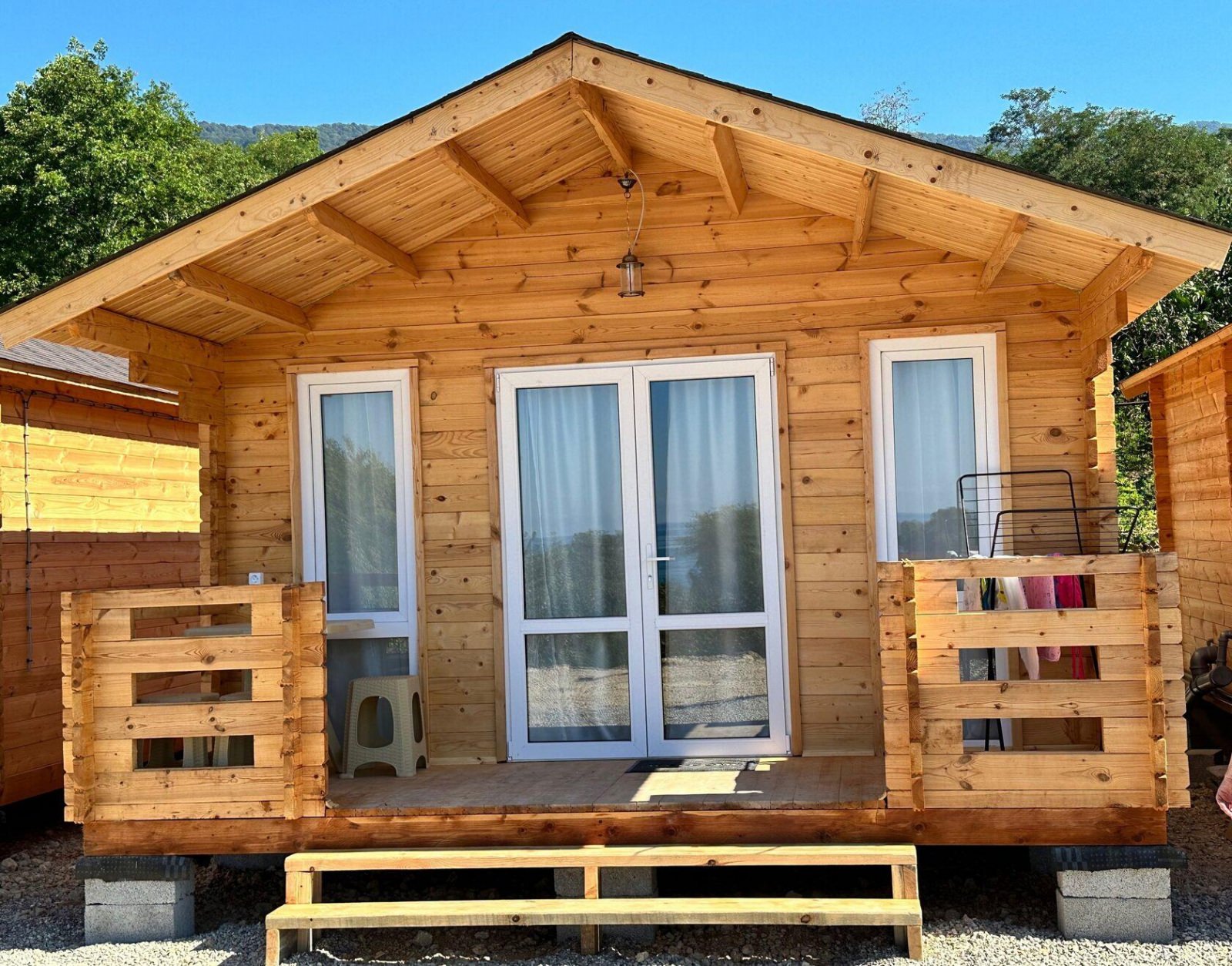 База находится в живописном районе, в 10 минутах от чистого пляжа. Вблизи нет никаких ночных клубов, круглосуточной громкой музыки, набережной, скопления людей - идеальное место для спокойного и размеренного отдыха. Это тихий уголок в пригороде Нового Афона, в окружение мандаринового сада и бамбуковой рощи. До города 2,5 км. Комплекс представляет собой 6 новых эко-коттеджей из качественного бруса, что обеспечивает отличную теплоизоляцию и уютную атмосферу. В каждом доме три спальных места, кондиционер, телевизор, Wi-Fi, холодильник, шкаф для одежды и зеркало. Каждый домик также оборудован душем и санузлом, предоставляются полотенца для рук и тела. К услугам гостей всё необходимое для приготовления и приема пищи в общей кухне : холодильник, плита, микроволновка, посуда, зона барбекю с мангалом, столики. Есть стиральная машина для отдыхающих.
